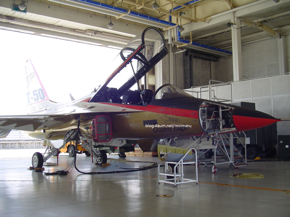 격납고에서 지상 시험 중인 T-50 초음속 고등훈련기 입니다. 일부 항공기는 하늘에서 잘나는지 비행시험을 하고 이렇게 일부 항공기는 지상에서 각종 전자장치나 기계장비가 잘 작동하는지 여부를 시험하게 됩니다.