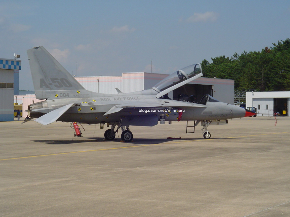 T-50과 형제지간인 A-50 공격기 : 훈련기인 T-50을 공격할 수 있는 모델로 만든 것입니다. 공격기는 지상에서 우리 육군과 가까이에서 전투중인 적의 보병과 지상무기를 공격하여 우리 육군을 공중에서 지원하여 보호하는 역할을 하는 항공기입니다. 사실 미군은 A-10이라는 항공기가 있는데 A-50보다 뛰어난 성능을 가지고 있습니다. 하지만 권투에서 라이트급과 헤비급이 있듯이 체급이 달라서 비교하는 것은 무의미 합니다. 헤비급 챔피언이 A-10이라면 라이트급 챔피언은 우리 A-50이라고 할 수 있습니다.