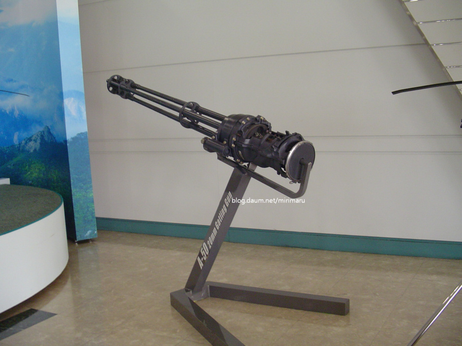 T-50의 공격기 버전인 A-50에 탑재되는 20mm 개틀링 건입니다. 적 항공기와 가까이 접근했을 때 미사일 대신 사용하게 됩니다. 20mm 개틀링 건은 대부분의 전투기에 표준으로 사용되고 있습니다. 보통 조종사가 탑승한 측면에 설치되어 있습니다.