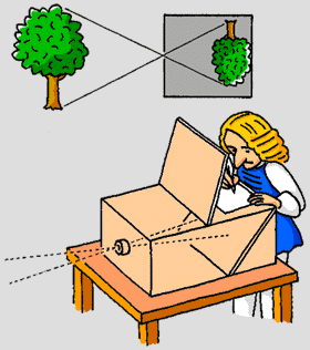 서양에서는 일찍부터 '카메라 옵스큐라(camera obscura, 라틴어로 ‘어두운 방’이라는 뜻)'라는 발명품이 만들어져 왔다. 이는 '핀홀카메라(바늘구멍 사진기)'의 원리를 이용해 그림을 얻는 도구인데, 주로 화가들에 의해 사용했다. 카메라 옵스큐라를 통해 얻어진 상(像)을 베껴서, 풍경화나 정물화의 밑그림을 그리는 데 사용하는 것이다.